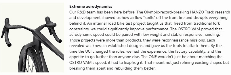 The ONE is not a revolution pulled from thin air; it is the evolution of everything we’ve learned in recent years. From the Olympic-record-breaking HANZŌ Track to the all-conquering OSTRO VAM, each project has added layers of knowledge. We’ve amassed a deep understanding of form and shapes, fusing CFD, wind tunnel, and real world knowledge. How to manipulate turbulence around a spinning wheel, how to extract more speed without sacrificing stability. When the UCI relaxed key design regulations, we were ready. We pushed to the very edge of what is now possible, not only aerodynamically, but in rider fit and handling. In its first public appearance, unannounced, in prototype form, the ONE won a stage of the Critérium du Dauphiné. It was not a debut. It was a declaration.